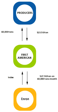 First American enters into a two-year swap with Enron for 60,000 tons per month at index, which,